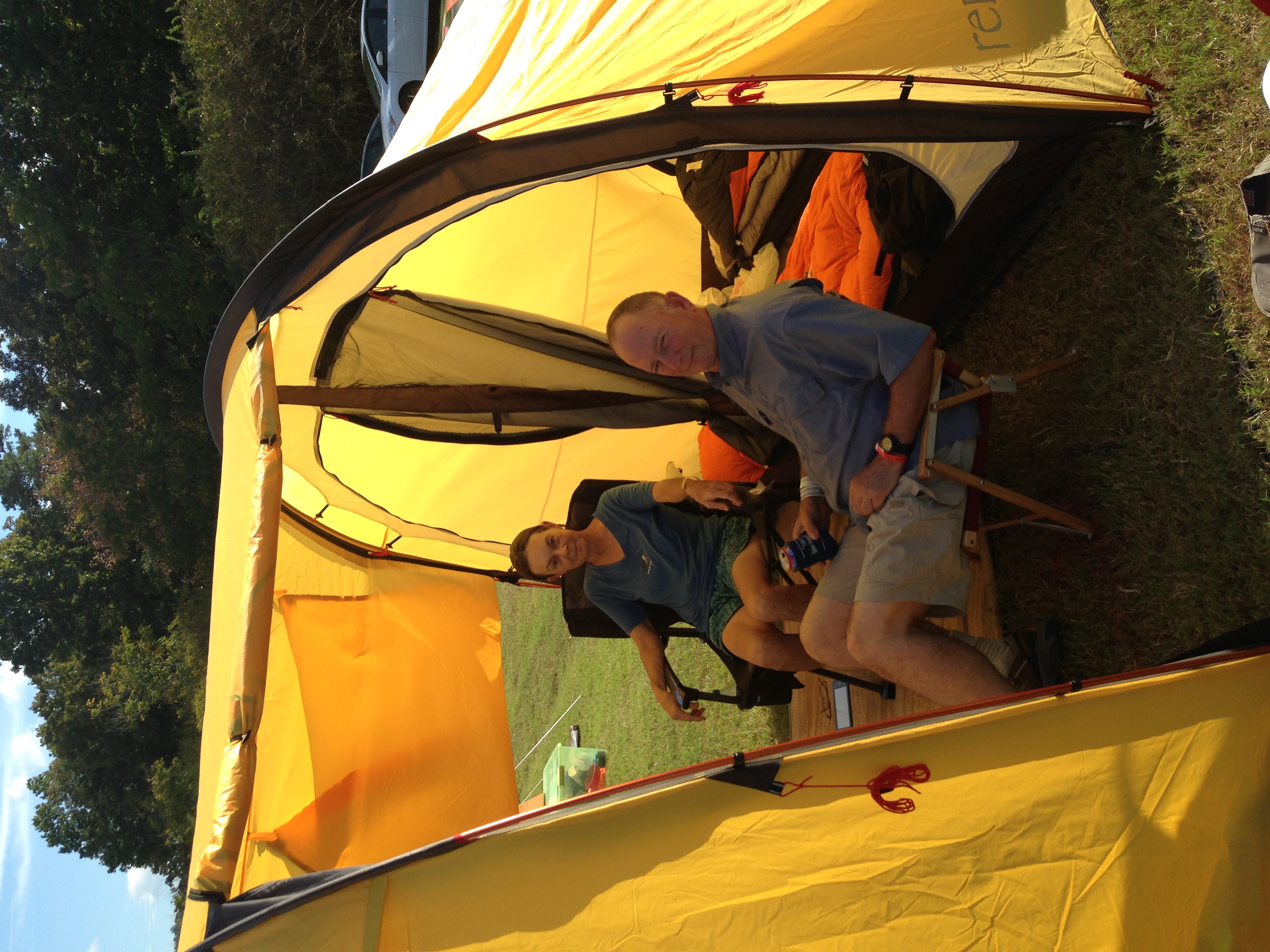 Peter & Sarah Youngblood in the Taj Mahal of tents. (2013)