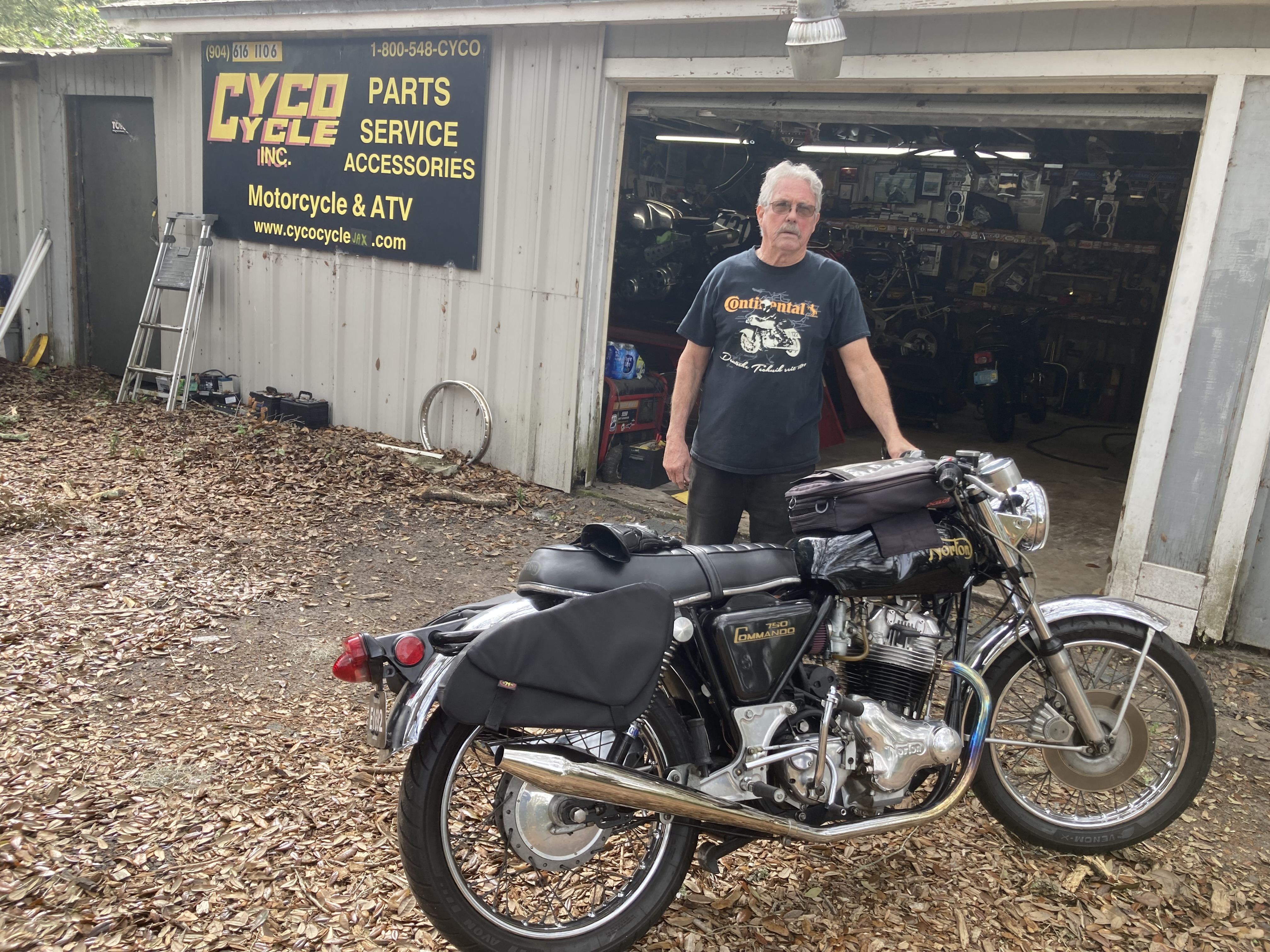 Stan Keyes at his shop. Installed CNW starter on Mark's bike.