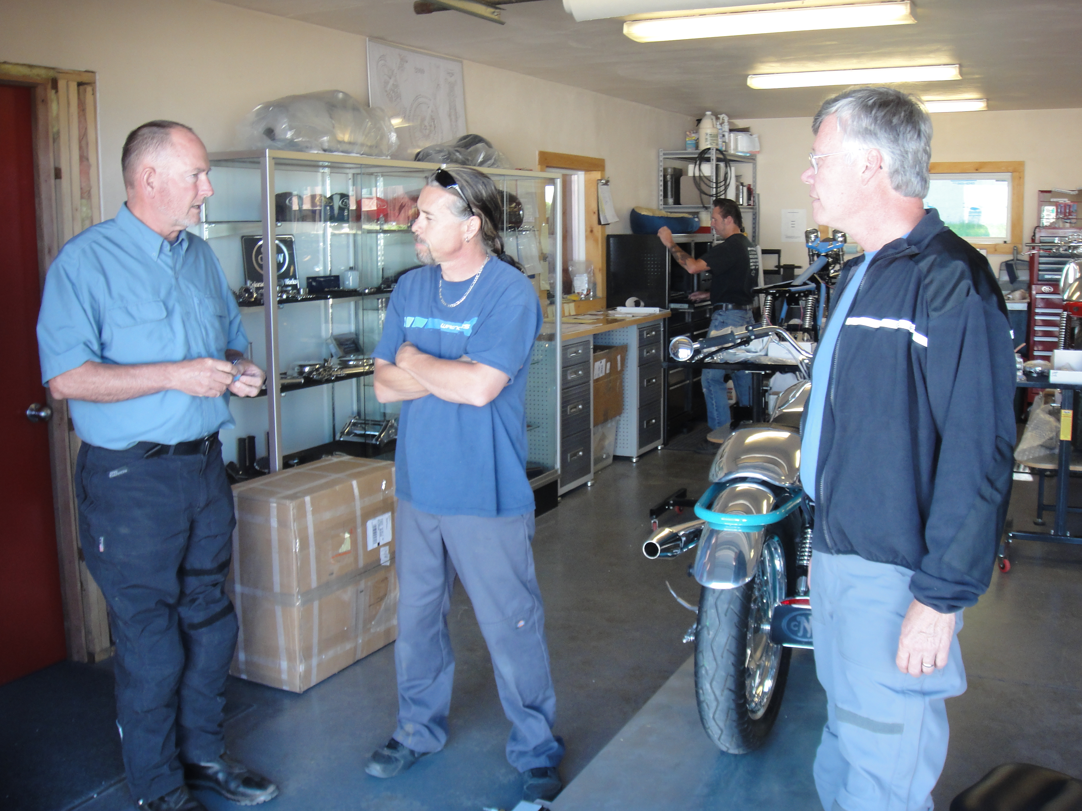 Peter, Matt Rambow, Mark while visiting the CNW shop in Dolores, Colorado.