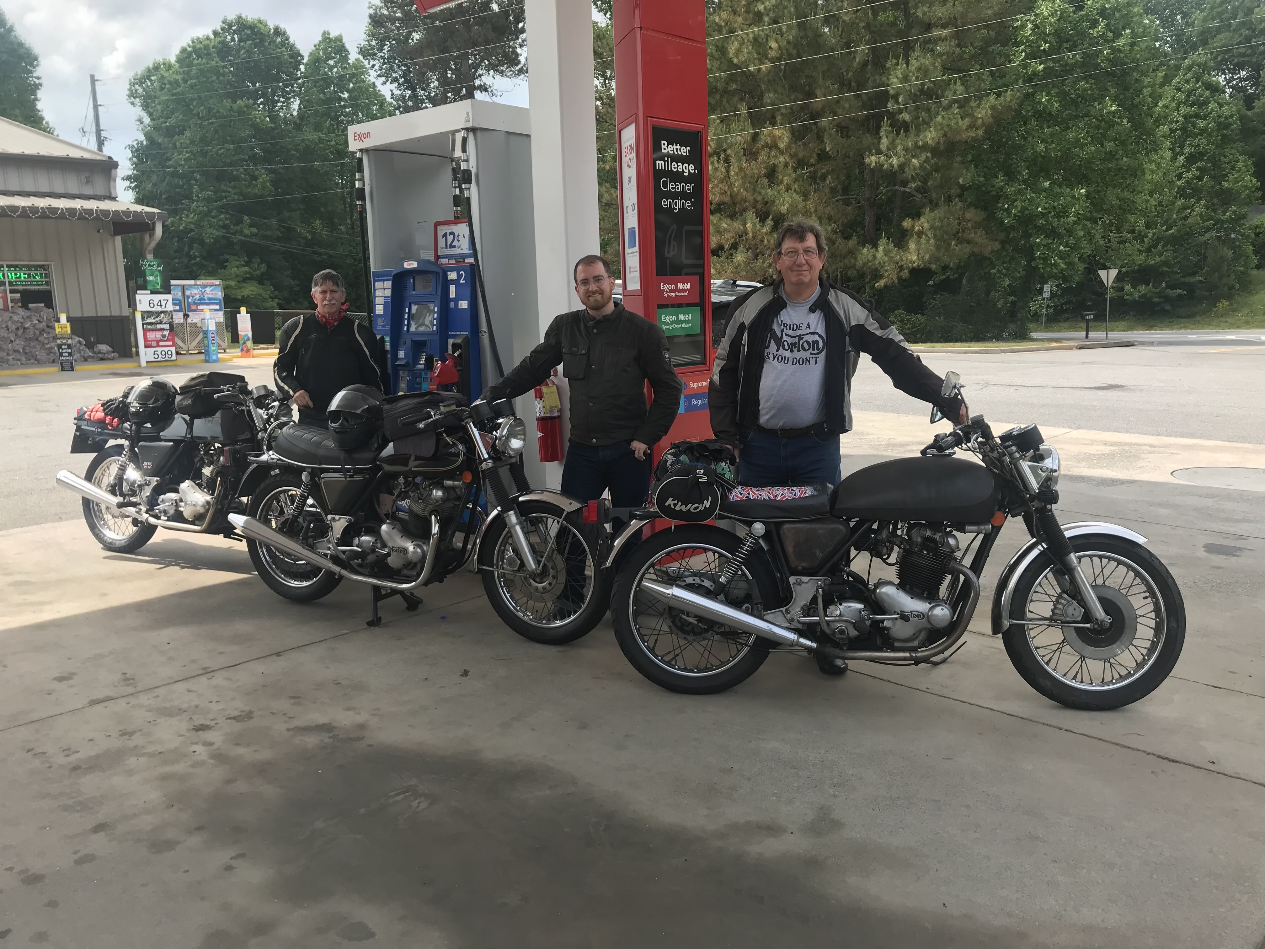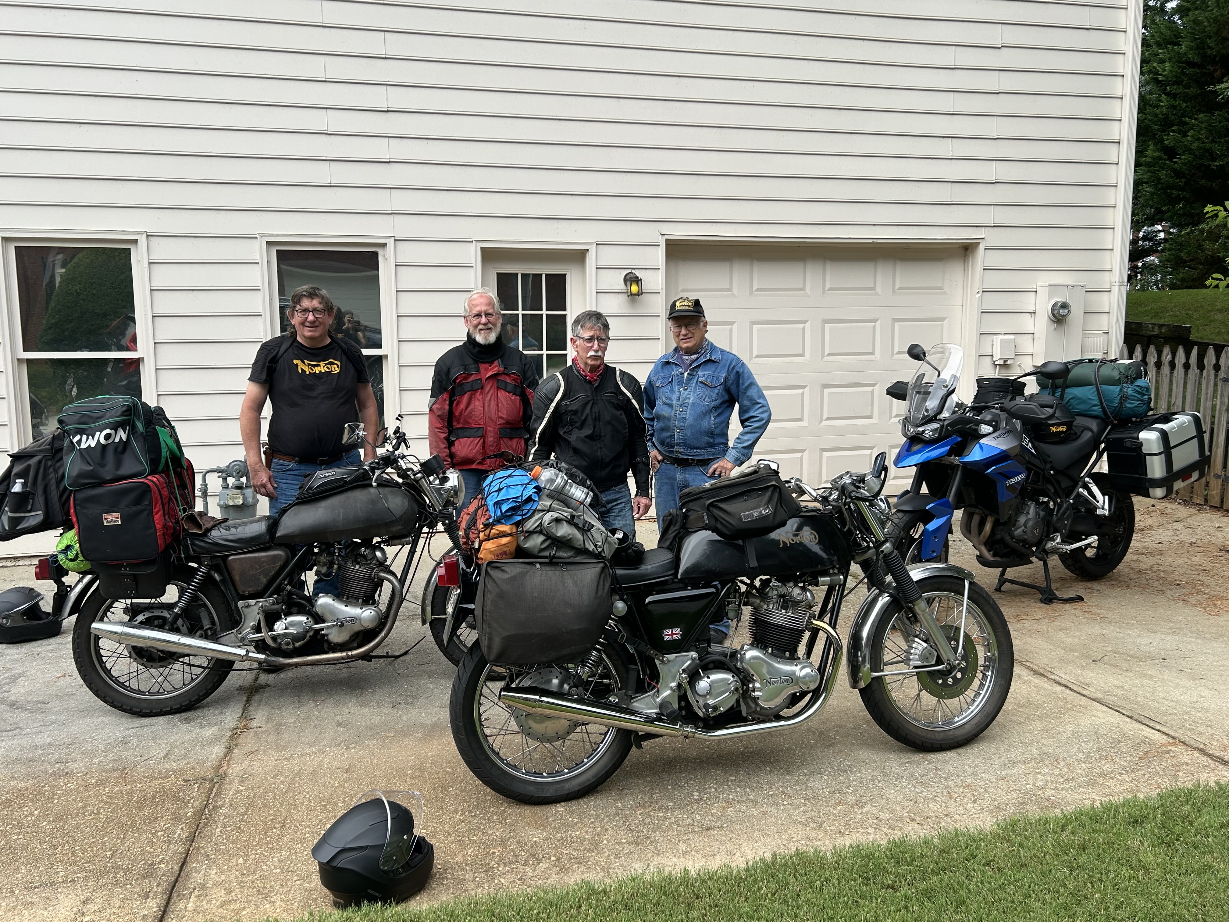Compare this 2024 photo to the one to the left. Left to right is Dave, Nathan, Tom, Keith. Nathan, Tom, Keith & Rabun rode from Atlanta to Roanoke to join Mark for a ride to the New Hampshire National.